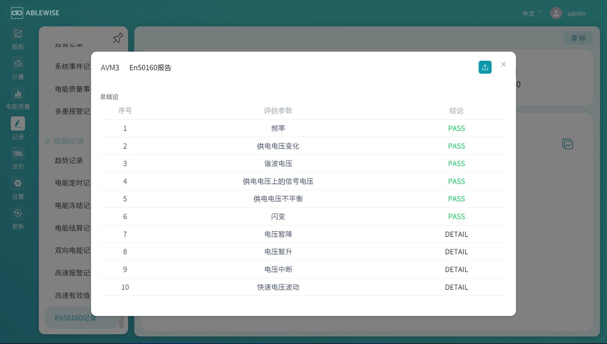 | EN50160統(tǒng)計報告 | 100份電能質量報告(每周輸出) | ● | ||