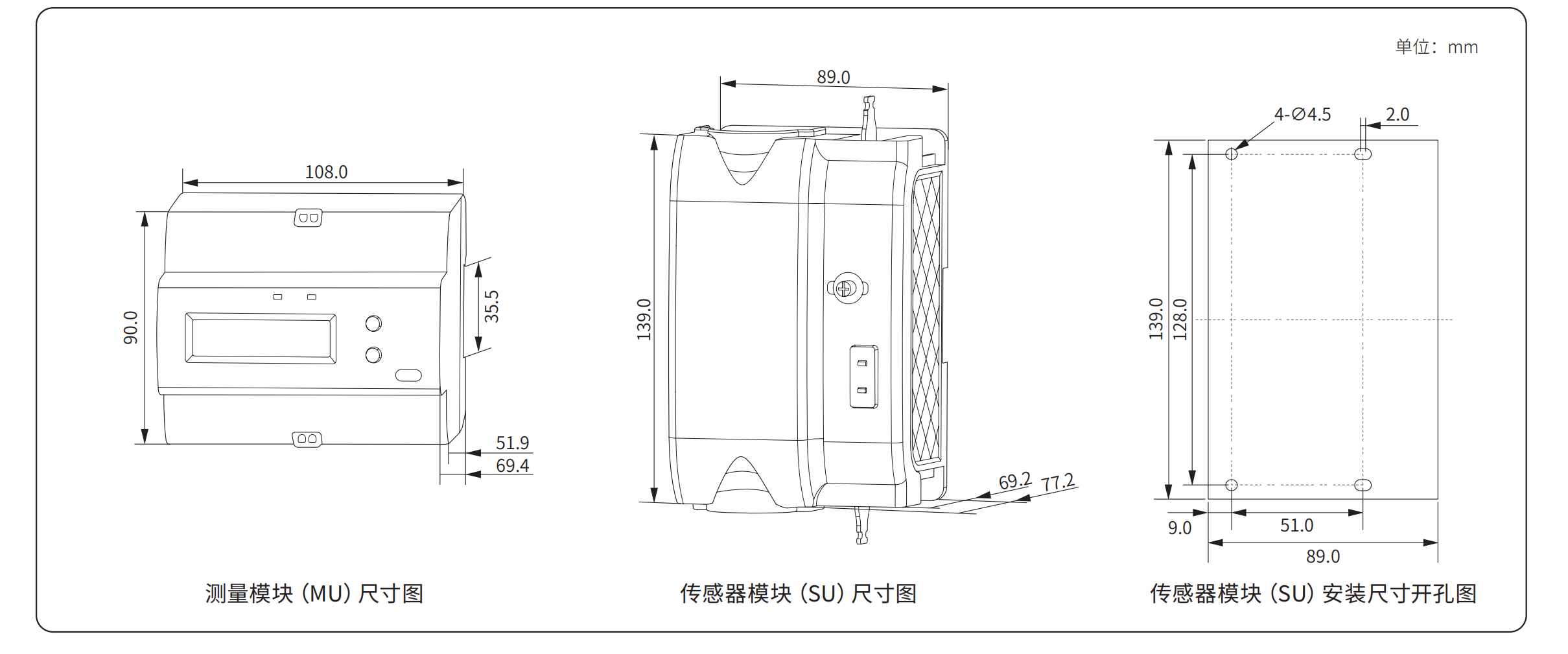 測量模塊(MU):108.0×90.0×69.4 mm 傳感器模塊(SU):89.0×139.0×77.2mm |