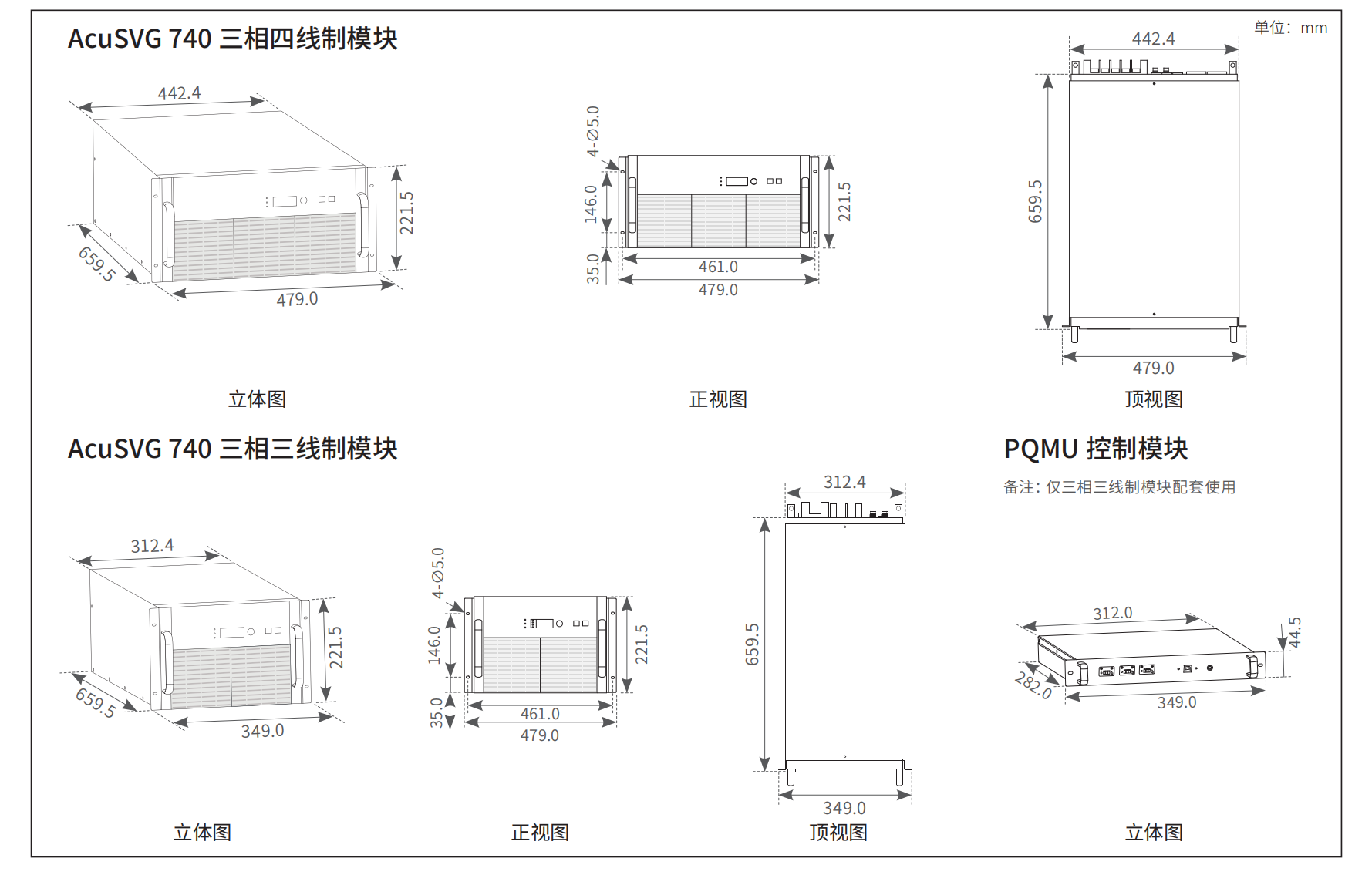 三相四線:442×660×222mm 三相三線:312×660×222mm(×3) |