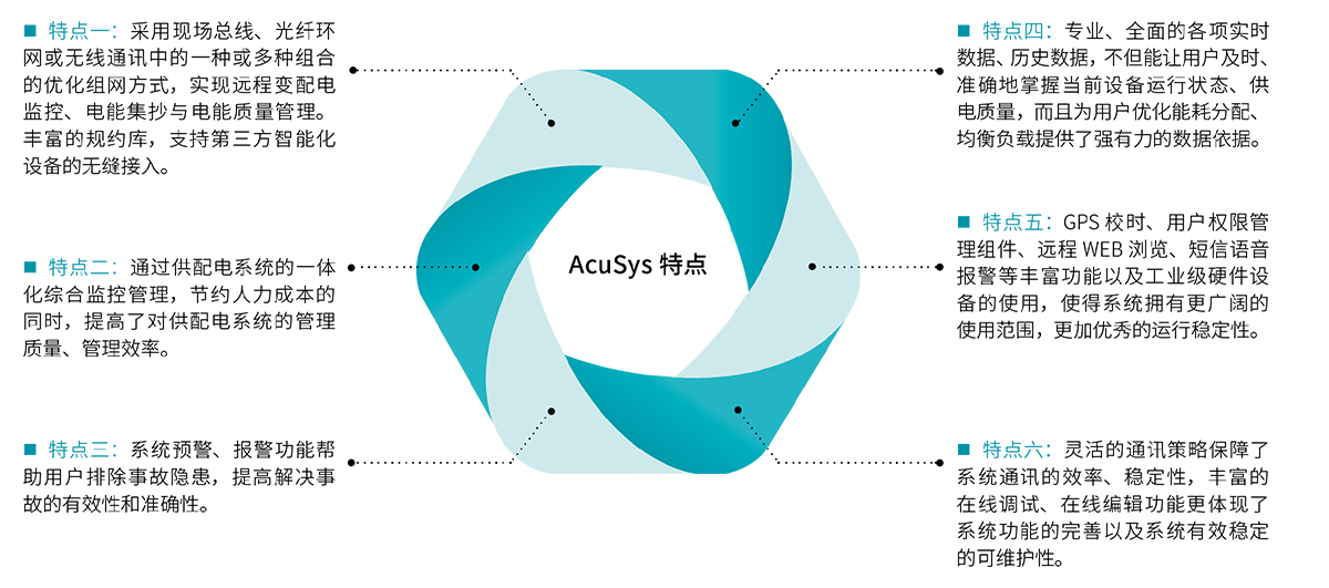 AcuSys 電力監控系統是北京愛博精電科技有限公司不斷創新、不斷完善的一套面向用戶側配電監控的智能化管理軟件。它以網絡電力儀表、智能配電設備為基礎,應用計算機軟硬件技術、自動控制技術、電子技術、通訊技術等電力行業以及電力行業相關領域的先進技術,采用一體化的設計思想、模塊化的應用功能、靈活的系統配置、開放式的軟硬件平臺、豐富的通訊接口協議為用戶提供先進的配電管理服務。