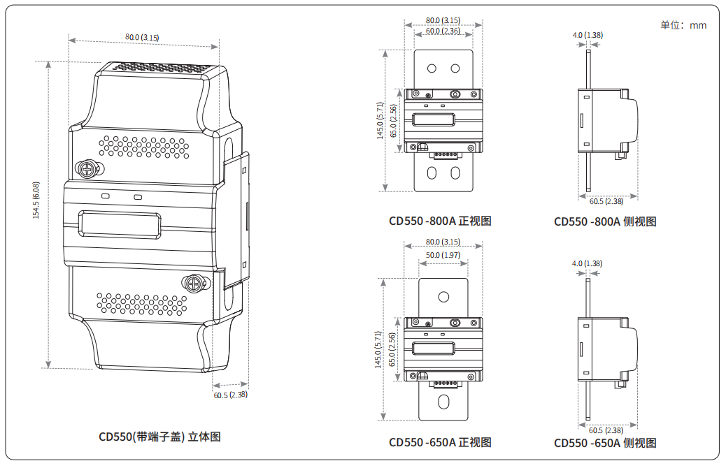 | 外形尺寸 | 80.0×154.5×60.5 mm mm(帶端子蓋);80.0×145.0×60.5 mm(不帶端子蓋) |